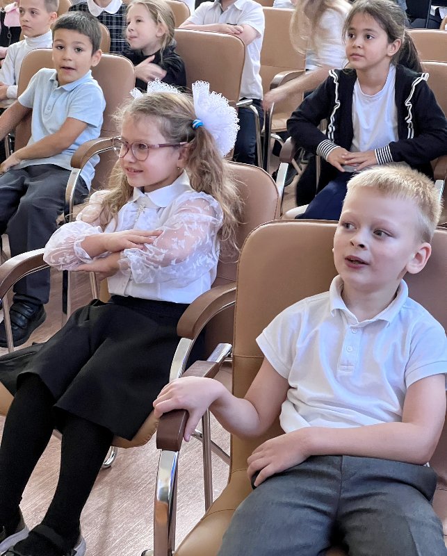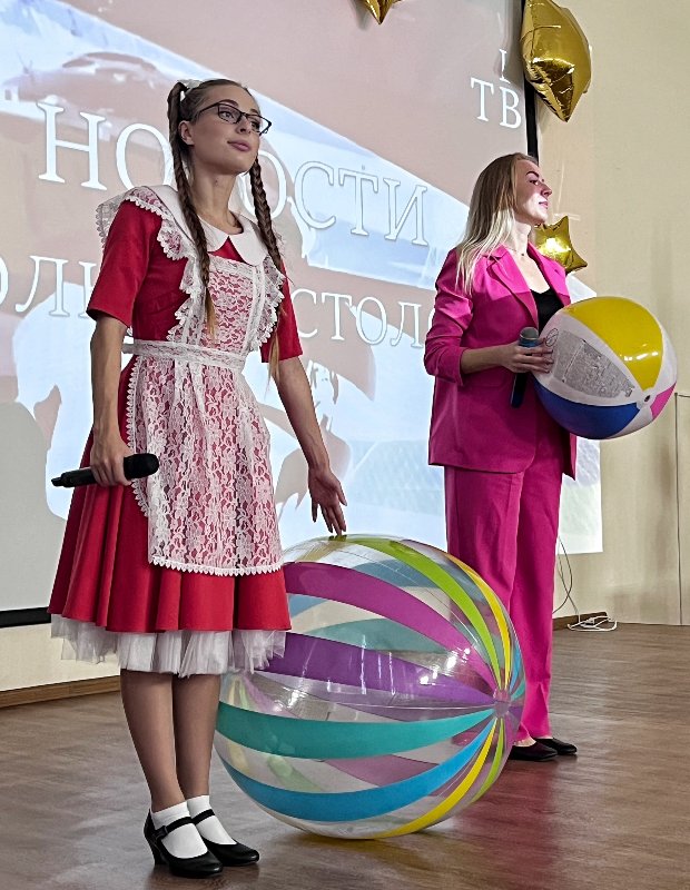Ведущая новостей канала «Школа ТВ» погрузила вчерашних дошколят в самую гущу событий. Вместе с отличницей Дашей и её озорной подружкой Машей ребята узнали свежие новости из мира науки, школьной перемены и даже из столовой!