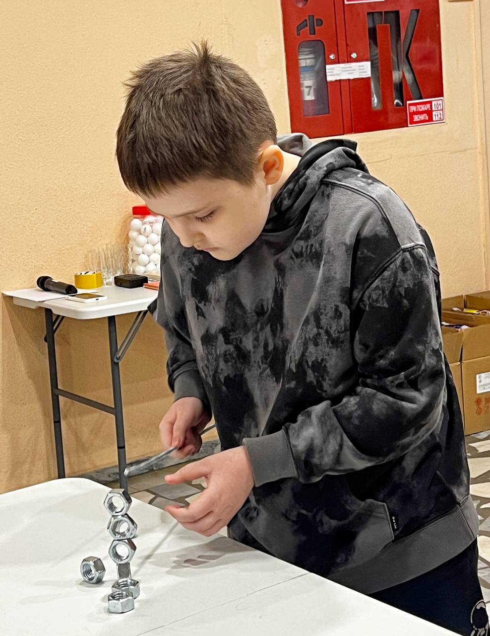помощью шарика выстроить пирамиду из пластиковых стаканчиков?